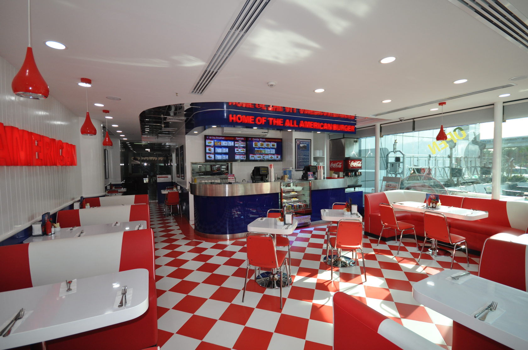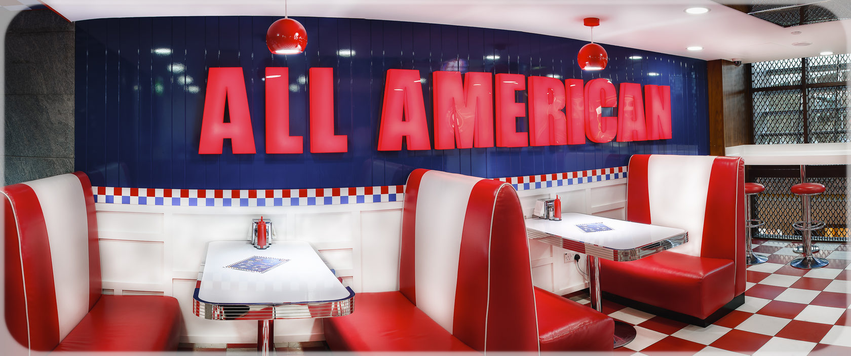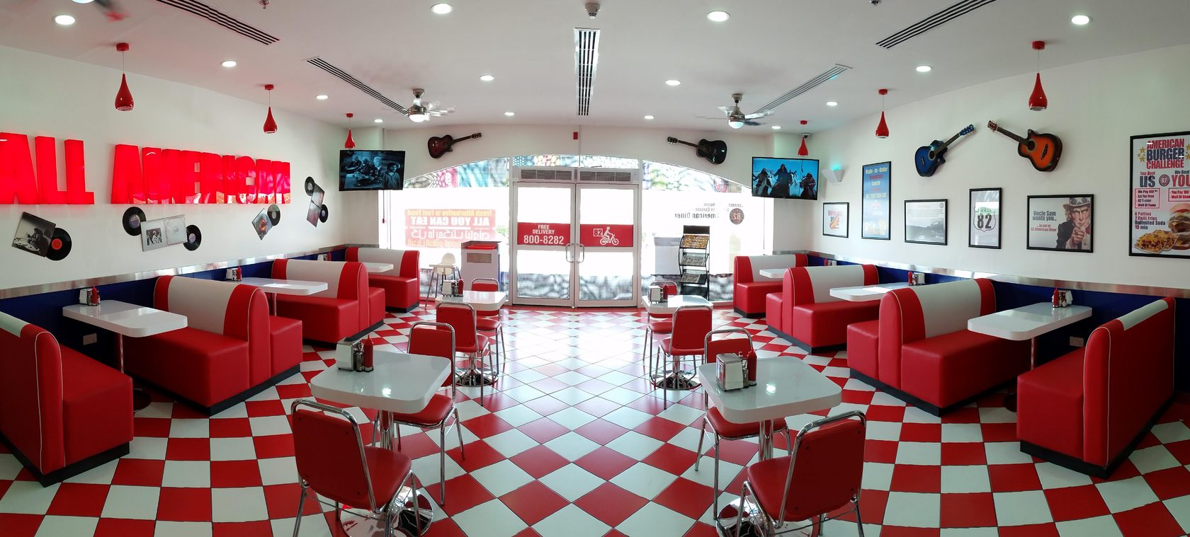 Дизайн сети быстрого питания в стилистике классических Американских закусочных.