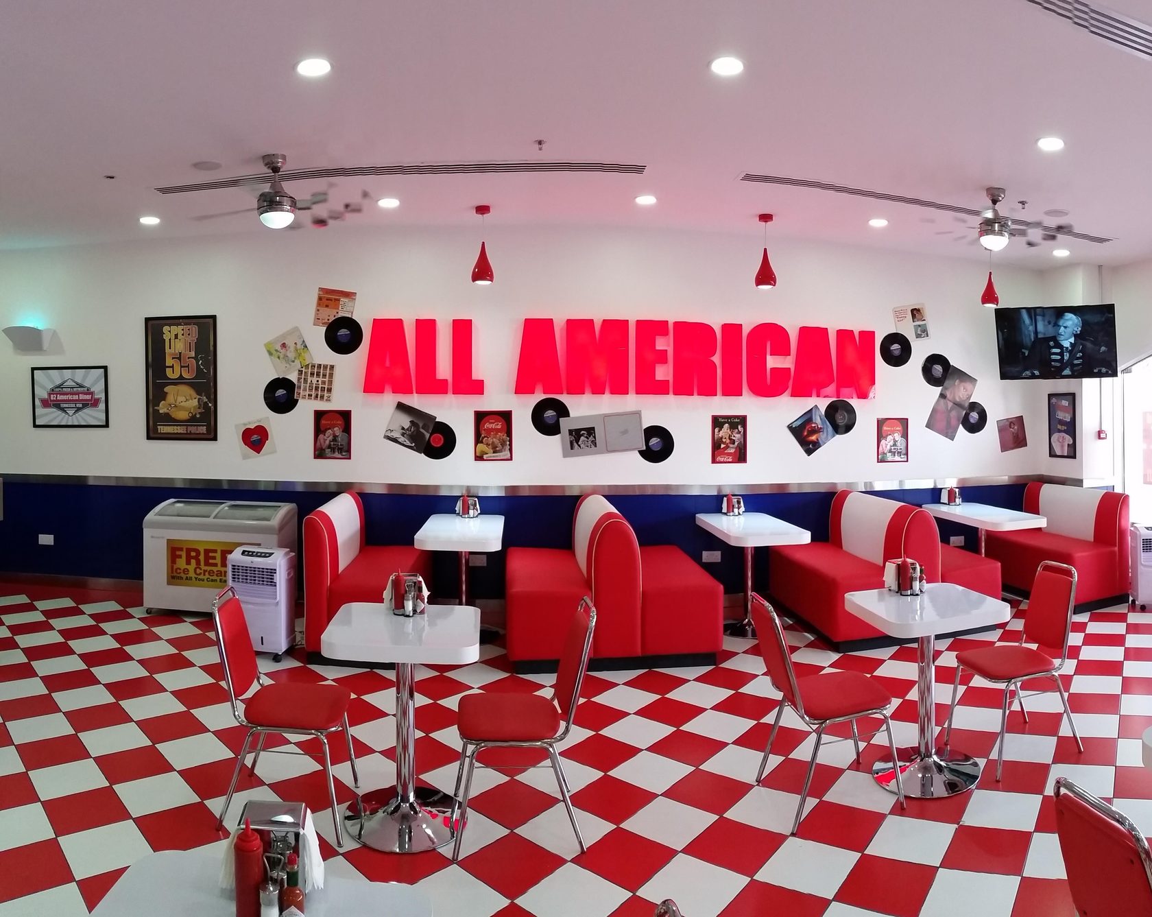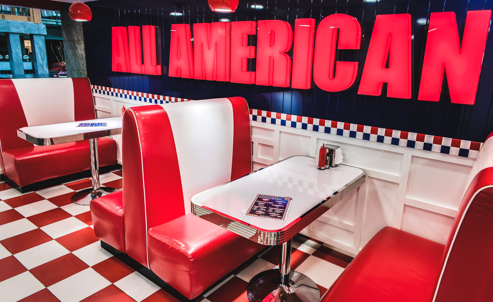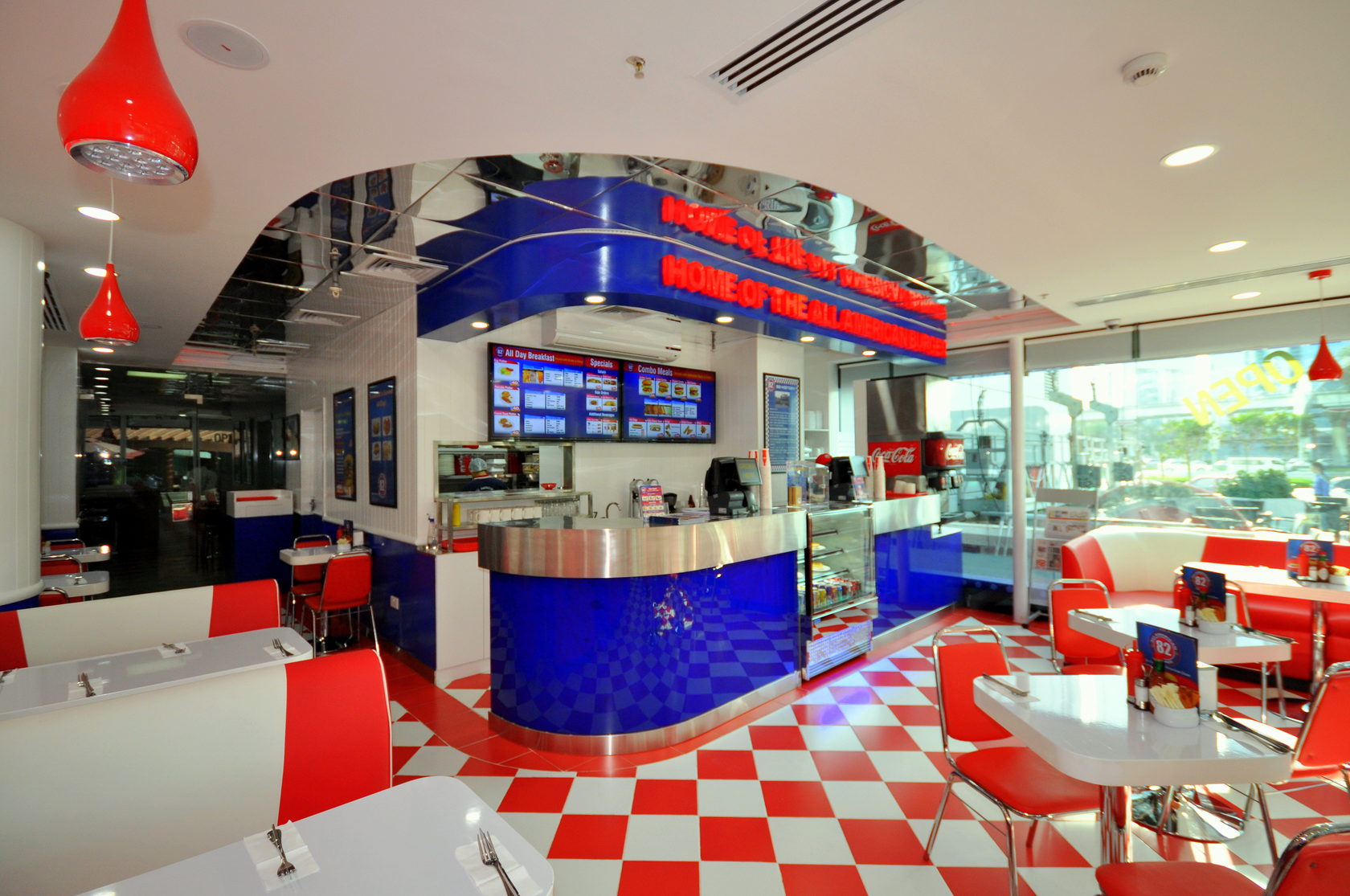 Дизайн сети быстрого питания в стилистике классических Американских закусочных.
