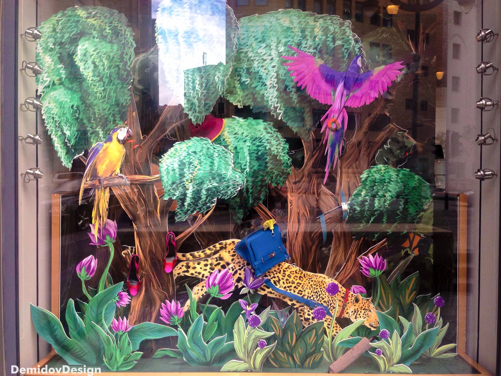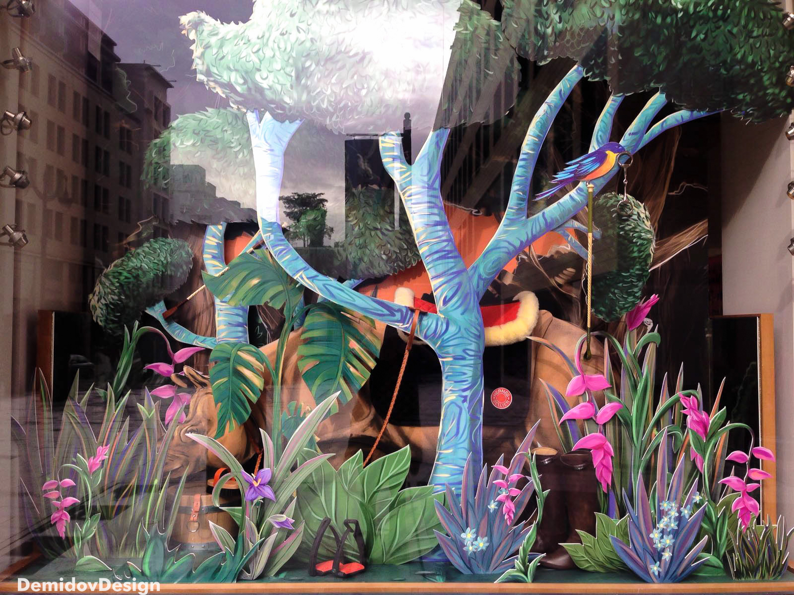 Новые весенние витрины бутика Hermes в Бейруте вдохновлены иллюстрациями из детских книжек. Мы трудились не одну неделю прорисовывая эти иллюстрации в слоях, чтобы передать атмосферу волшебного леса и дух приключений.