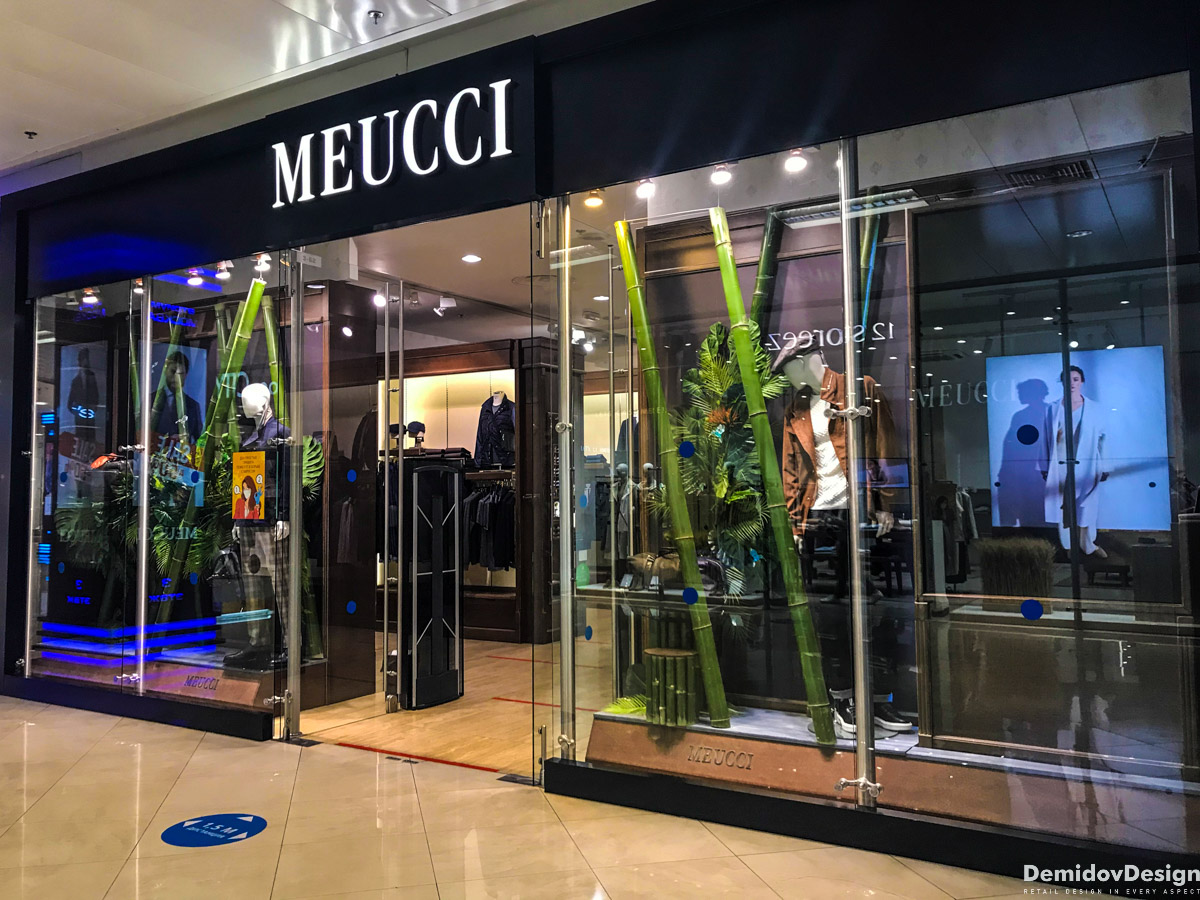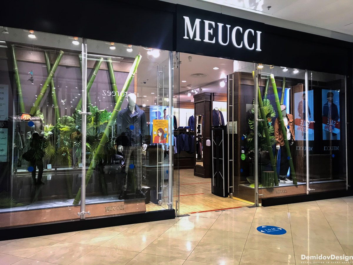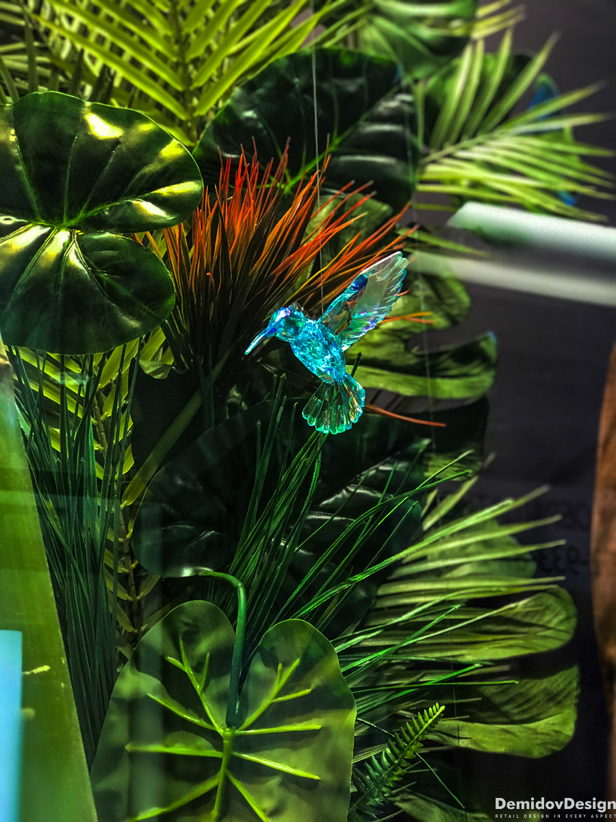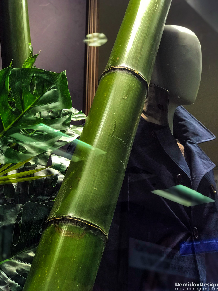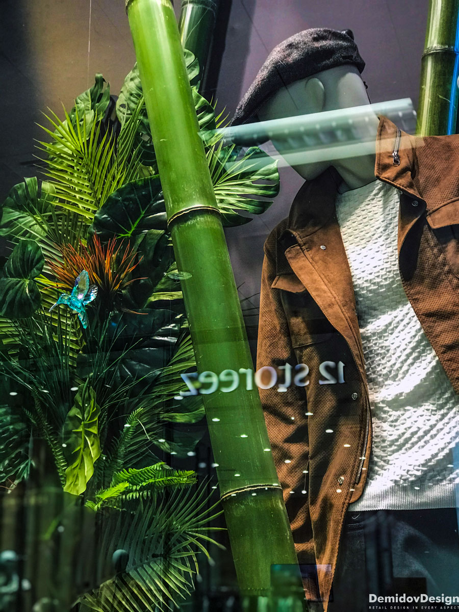 Тропическое весеннее оформление для бутика Meucci в ТЦ Европейский, Москва.