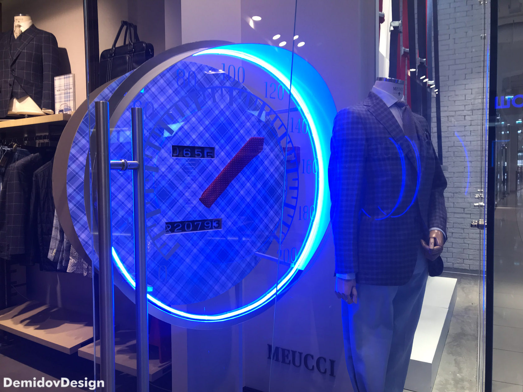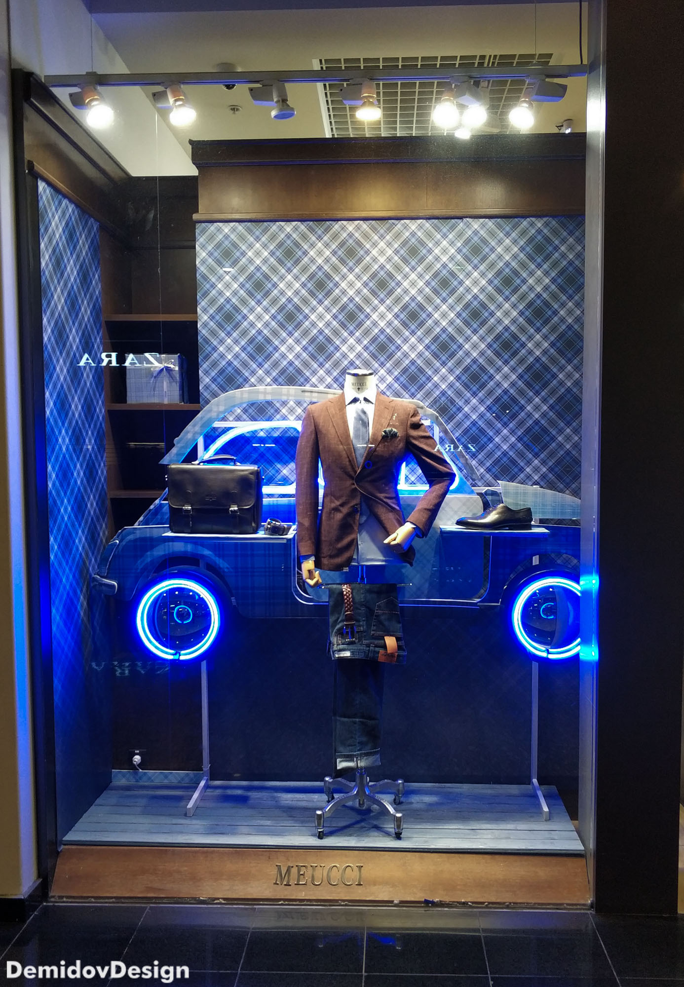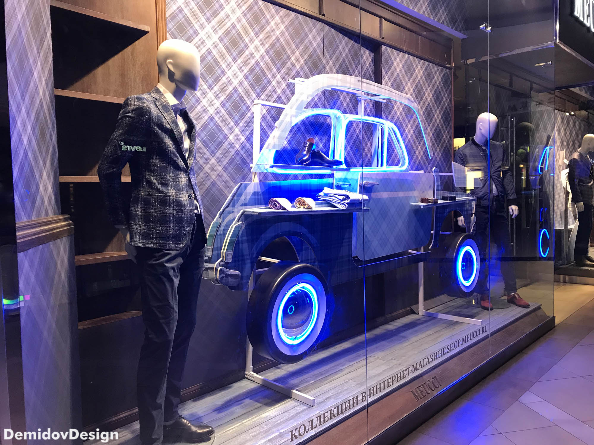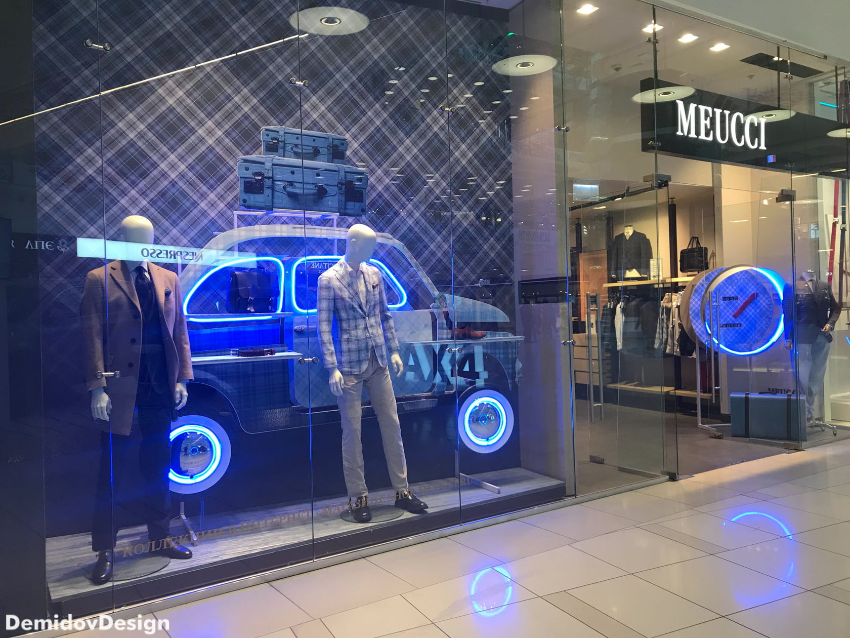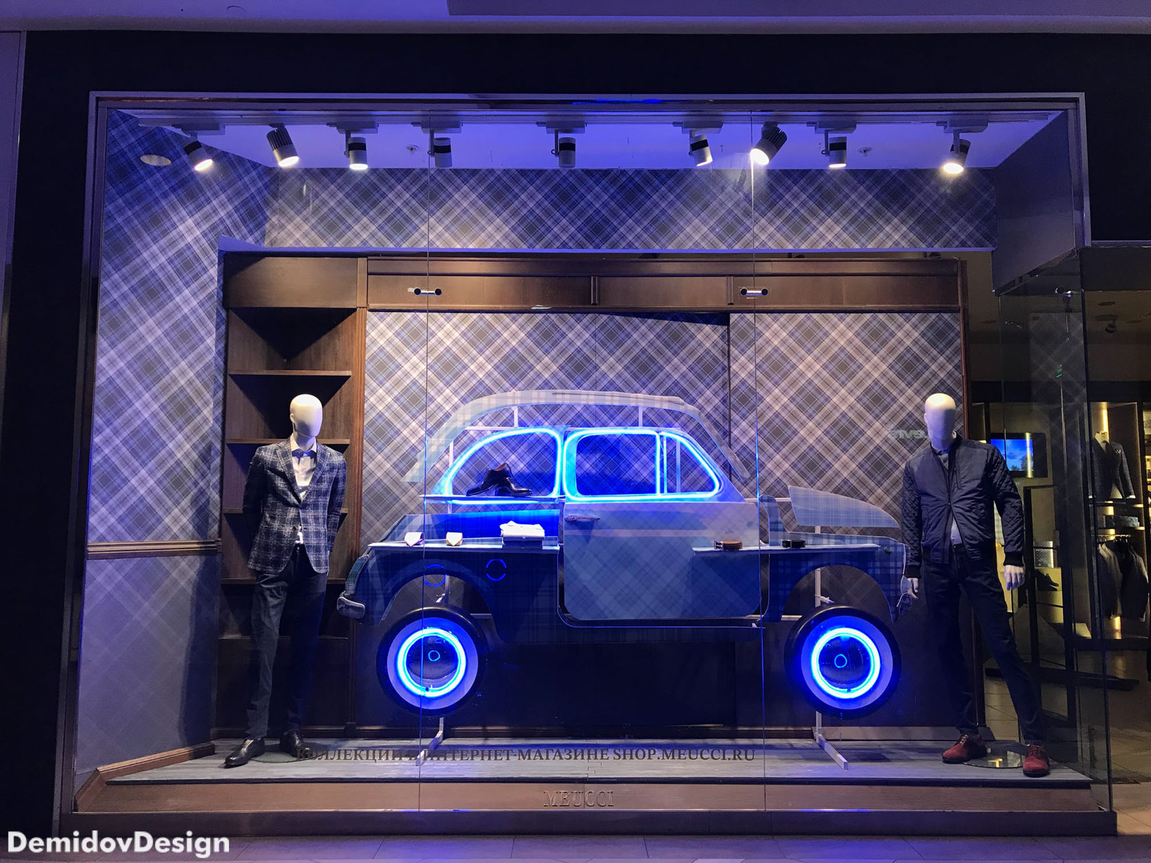 Клетка - один из самых классических, признанных во всем мире, рисунков на ткани. Итальянские пиджаки в клетку никогда не выходят из моды и всегда являются атрибутом настоящего джентельмена. Наша фантазия на тему клетчатого рисунка и неоновой подсветки получила воплощение в весенних витринах бутиков Меуччи.