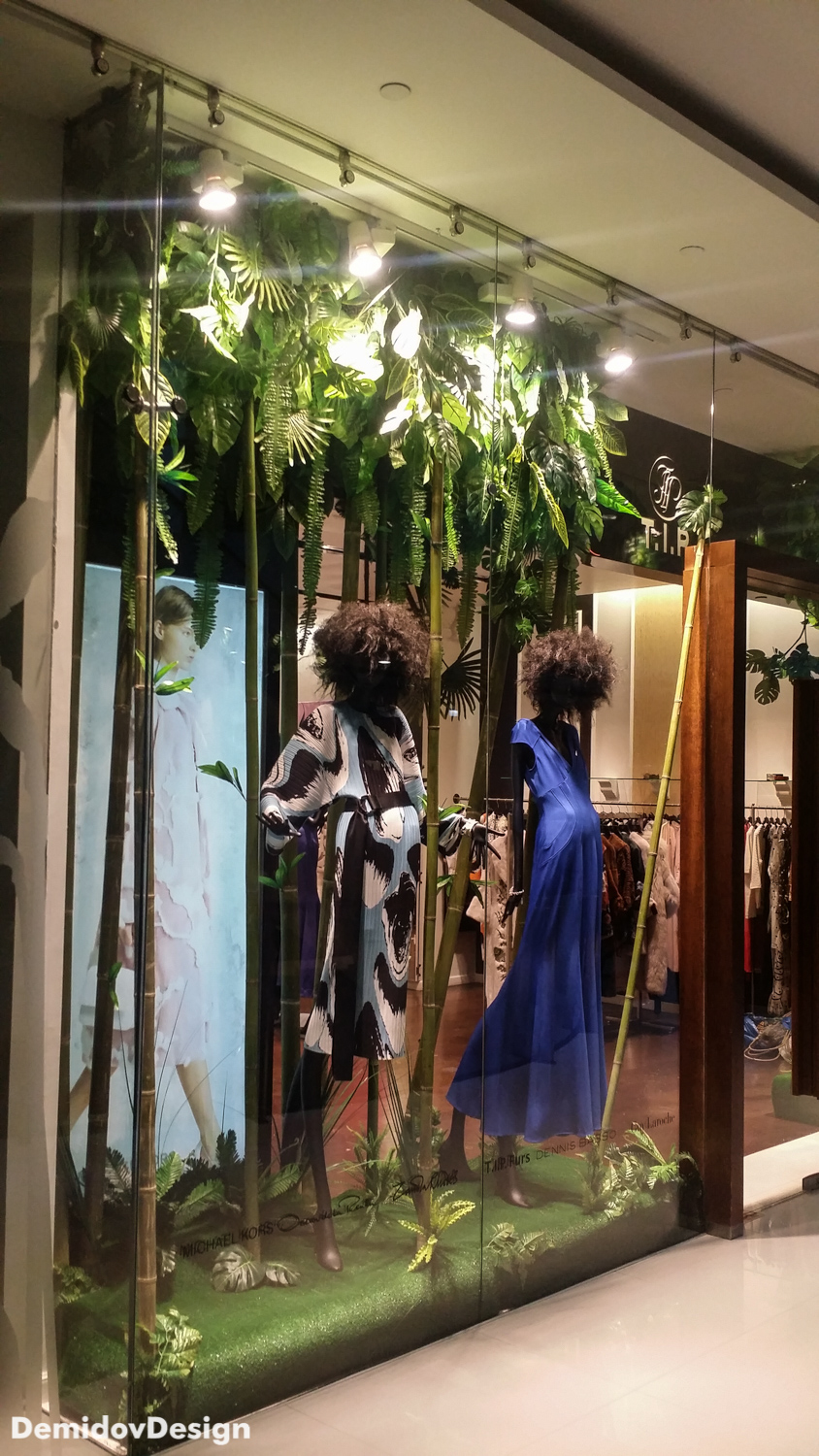Оформление витрины постоянного клиента – Мехового салона T.I.P. Furs, на этот раз витрины сезона весна-лето.