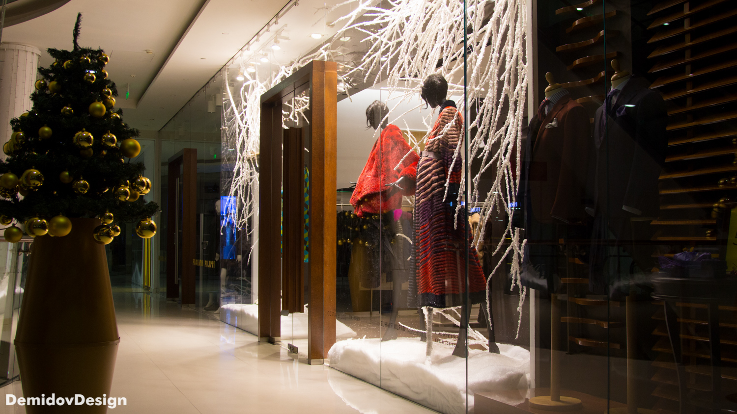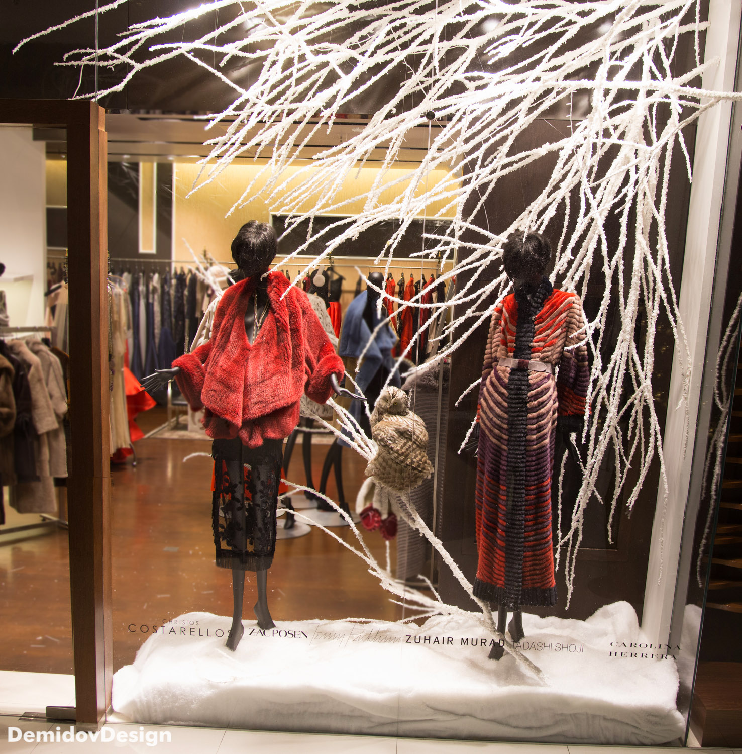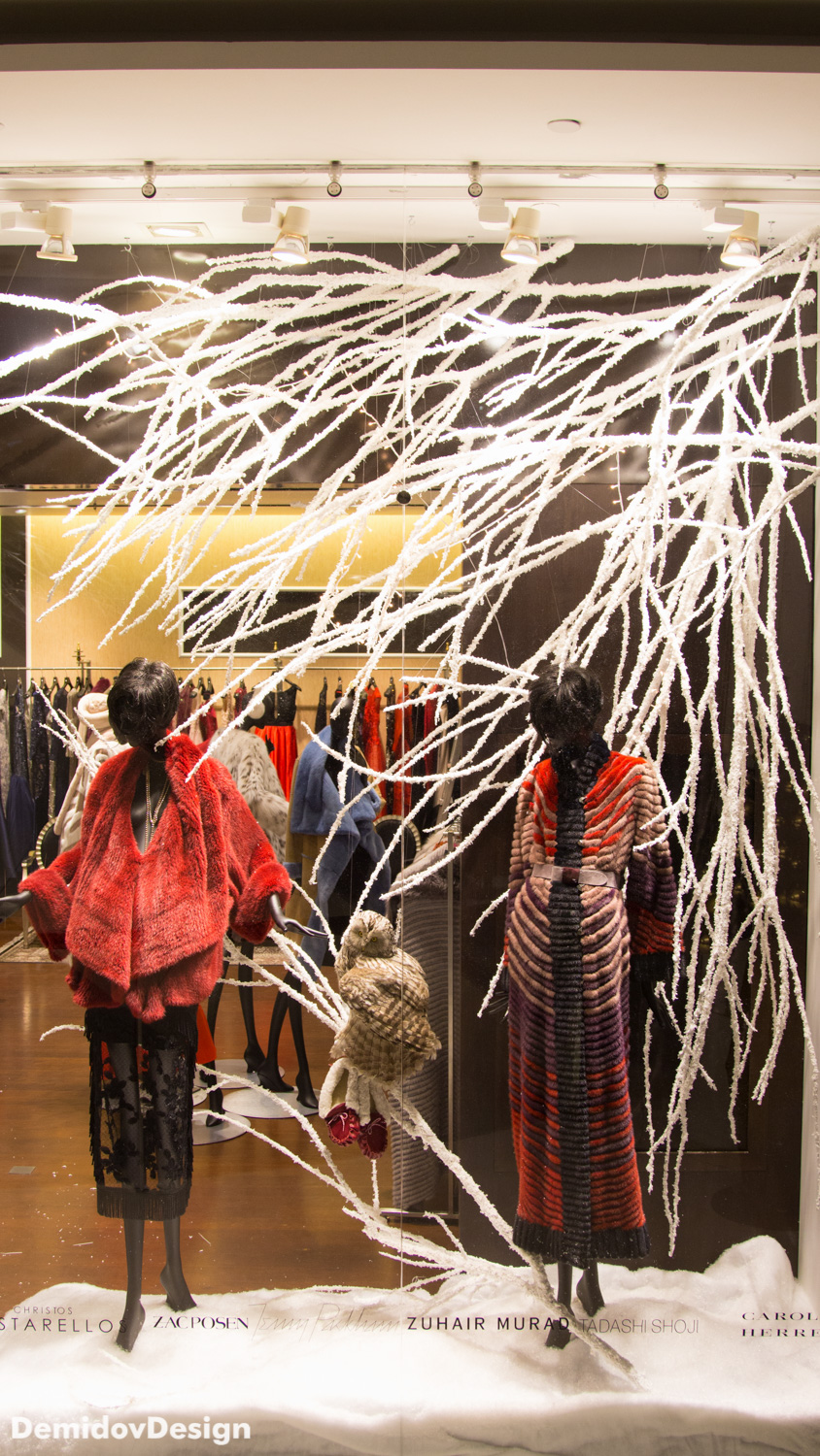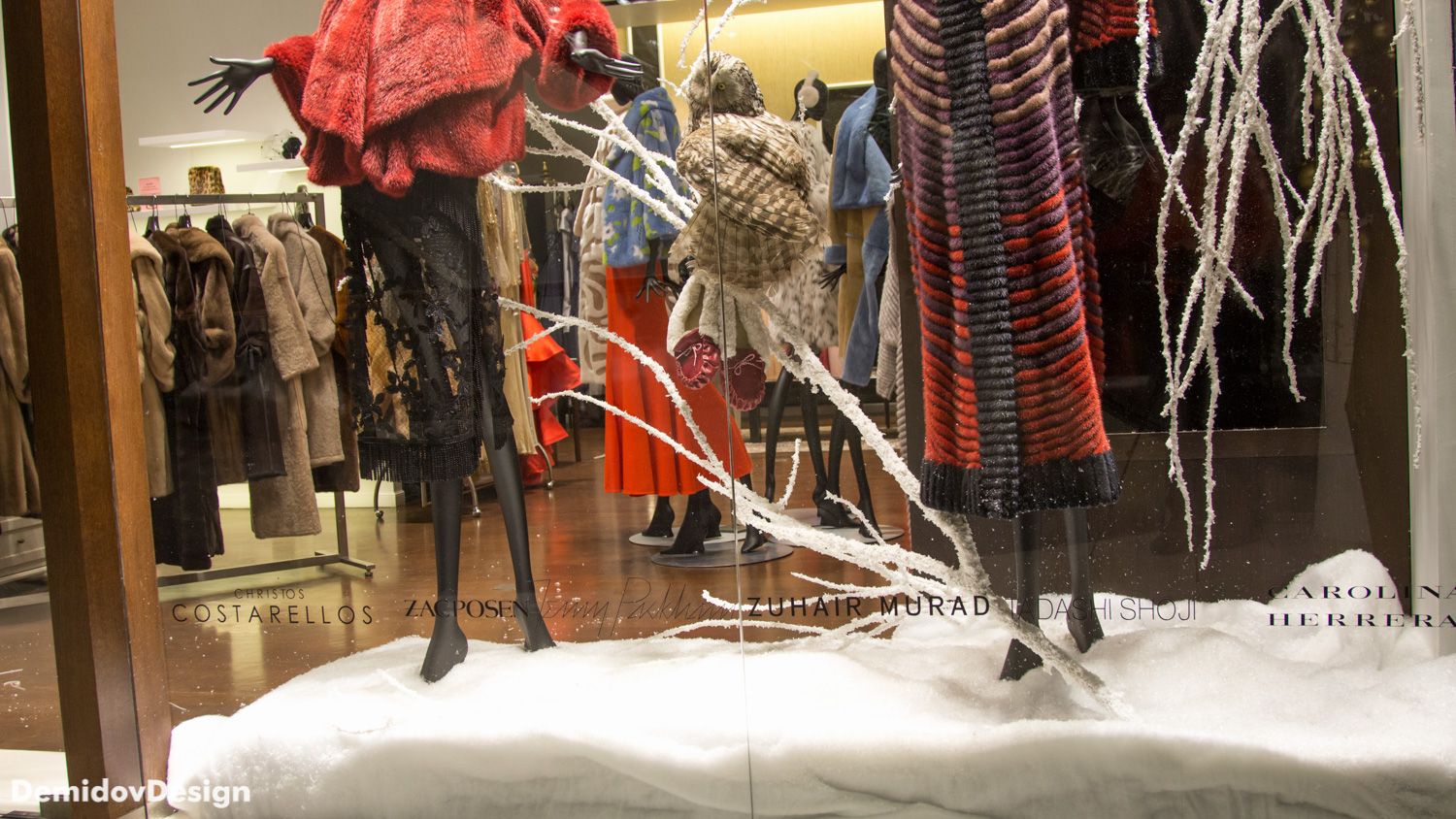 Необыкновенные заснеженные ветви в витринах мехового салона T.I.P. Furs в торговом центре "Времена Года" в Москве были бы неполными, если бы на них грациозно не восседали потрясающие совы.