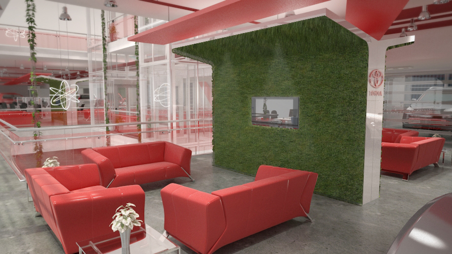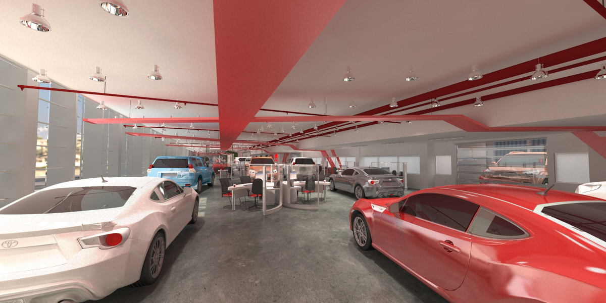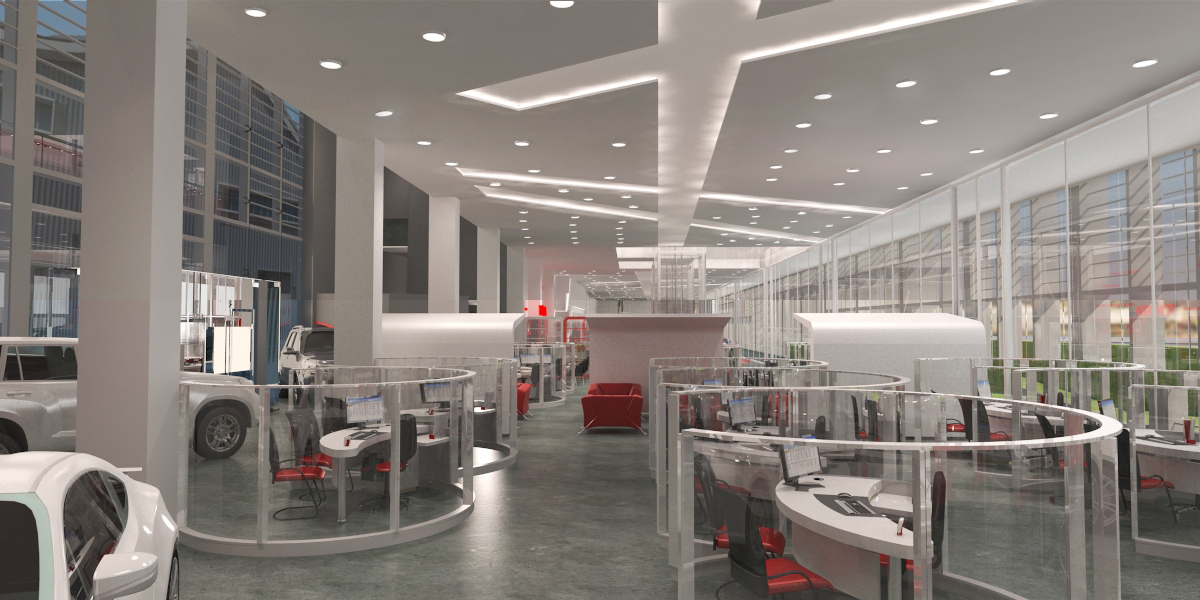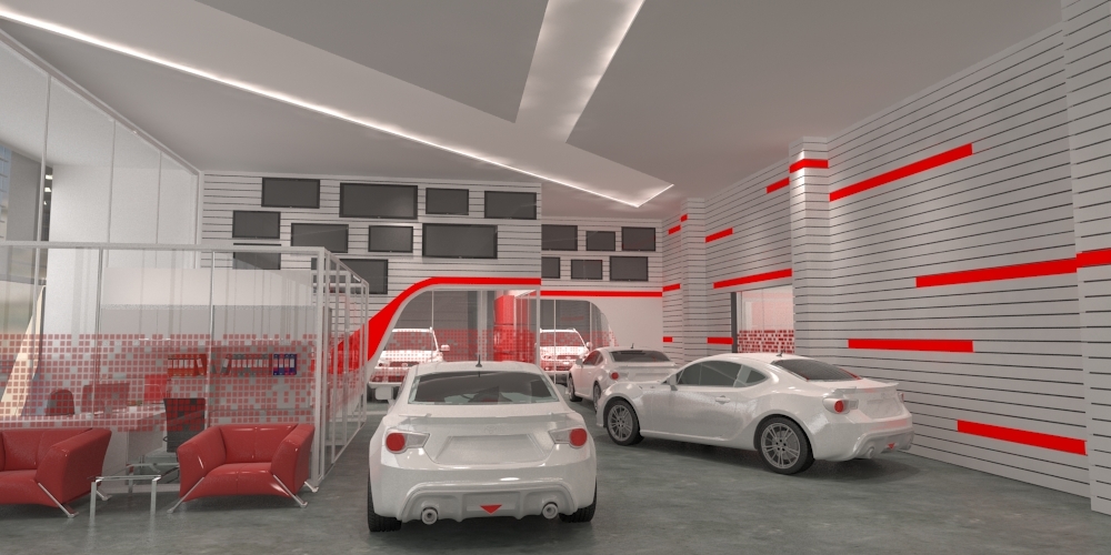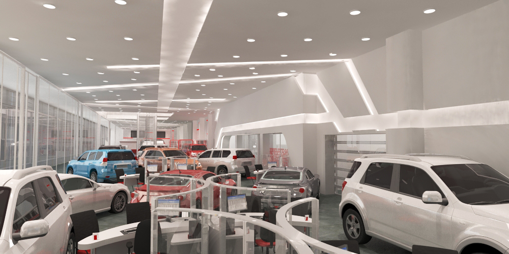 Дизайн интерьера шоурума Toyota в Абу-Даби. Современный, яркий и светлый дизайн для того чтобы ничего не отвлекало от машин представленных в галлереях.